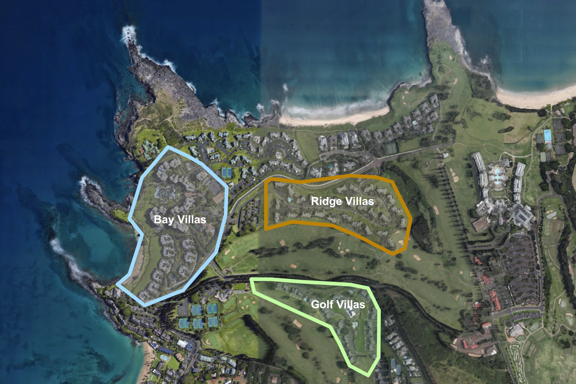カパルア ベイ ヴィラズ、カパルアの尾根とカパルア ゴルフ ヴィラズ.
