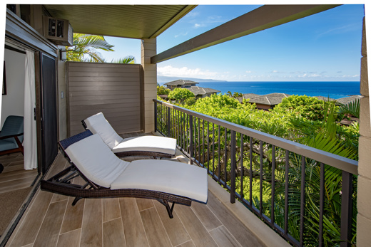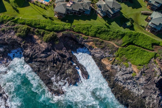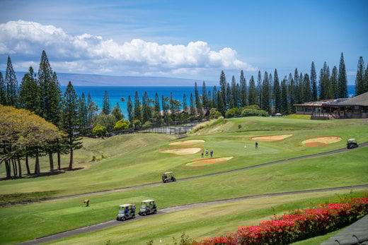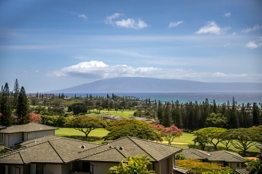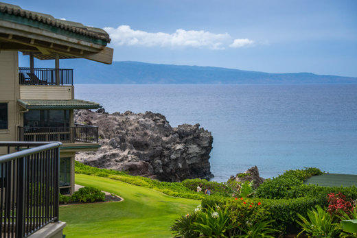 カパルアの斜面の高台に位置するリッジ ヴィラズからは、素晴らしい海とフェアウェイの景色を眺めることができます。